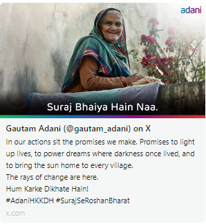 Amit Sharma, the acclaimed film director of the superhit movie ‘Badhaai Ho’, from Chrome Pictures, brings this story to life with remarkable finesse. Conceptualised by Ogilvy India, the film captures the human dimension of Adani’s clean energy mission. It illustrates how solar power, delivered by Adani Group, becomes a catalyst for opportunity, resilience, and progress.