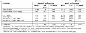 • EBITDA margin from Power Supply consistent at 90% in Q4 FY21 and expands by ~ 200 bps YoY at 91% in FY21