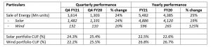 • Sale of Energy for FY21 increased by 25% YoY on the back of capacity addition of 925 MW and consistent Solar and Wind CUF.