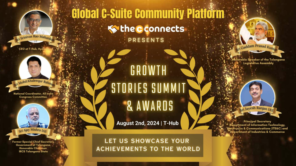 Hyderabad, August 8, 2024 — The Global C-Suite Community Platform Magazine, TheCconnects, proudly hosted the Growth Stories Summit Event on August 2, 2024, at T-Hub. This prestigious event celebrated exceptional achievements and growth stories of individuals and companies across various industries, recognizing their contributions to innovation, leadership, and excellence.