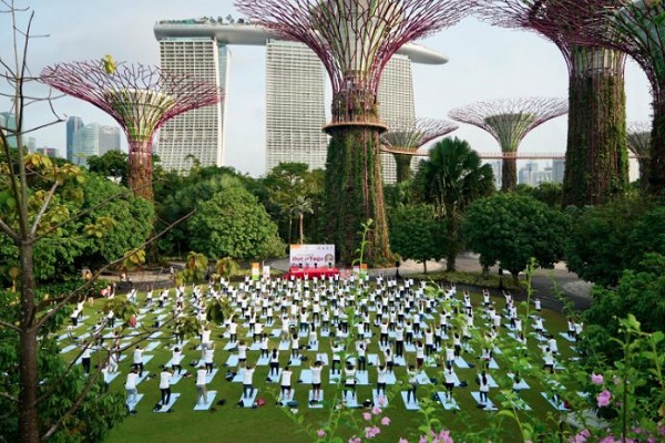 In Singapore, people gathered at Gardens by the Bay to celebrate Yoga Day.