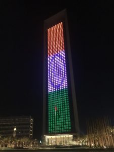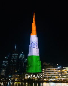 احتفالاً بيوم الاستقلال الهندي الرابع والسبعين، نضيء #برج_خليفة بألوان العلم الهندي لنتمنى لهم دوام الرخاء والسلام والحرية#BurjKhalifa lights up in commemoration of India’s 74th Independence Day. May the tricolor of freedom, courage and peace always prosper. pic.twitter.com/Tl4APU11Ju