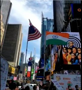 The Federation of Indian Associations (FIA) of the tri-state area of New York, New Jersey and Connecticut created history on August 15, 2020 by unfurling the Indian tricolour for the first time ever at the #iconic @TimesSquareNYC to commemorate India’s 74th Independence Day https://t.co/P20YUHd7mh pic.twitter.com/6QBqCZlgyW