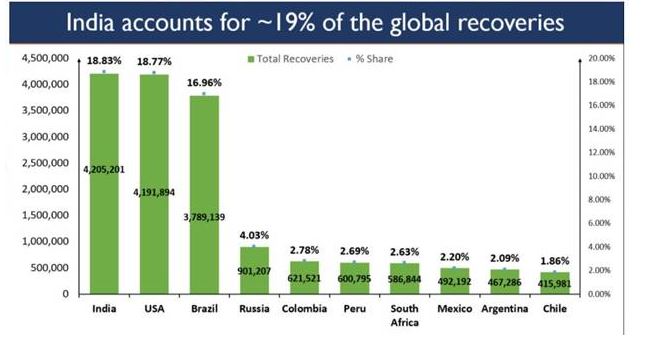 India overtakes USA to become No.1 in terms of global COVID 19 recoveries