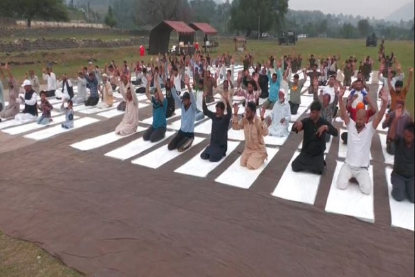 Indian Army personnel of the Krishna Ghati Brigade’s Balnoi Battalion marked the 11th International Day of Yoga by organising a yoga session in Poonch, with enthusiastic participation from residents of nearby border villages.