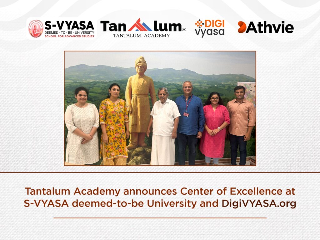 In a pioneering collaboration, Tantalum Academy, S-VYASA University, and Athvie Innovation Private Limited are thrilled to announce the launch of a Centre of Excellence (COE). This initiative aims to transform education in India by seamlessly blending Yoga and Soft Skills into school and college curricula delivered through a unique pedagogy based on games & storytelling. The COE will focus on conducting research, creating courses, and collaborating with similar institutions to promote the overall development of students and children. The goal is to empower them with the necessary skills to thrive in today’s world.