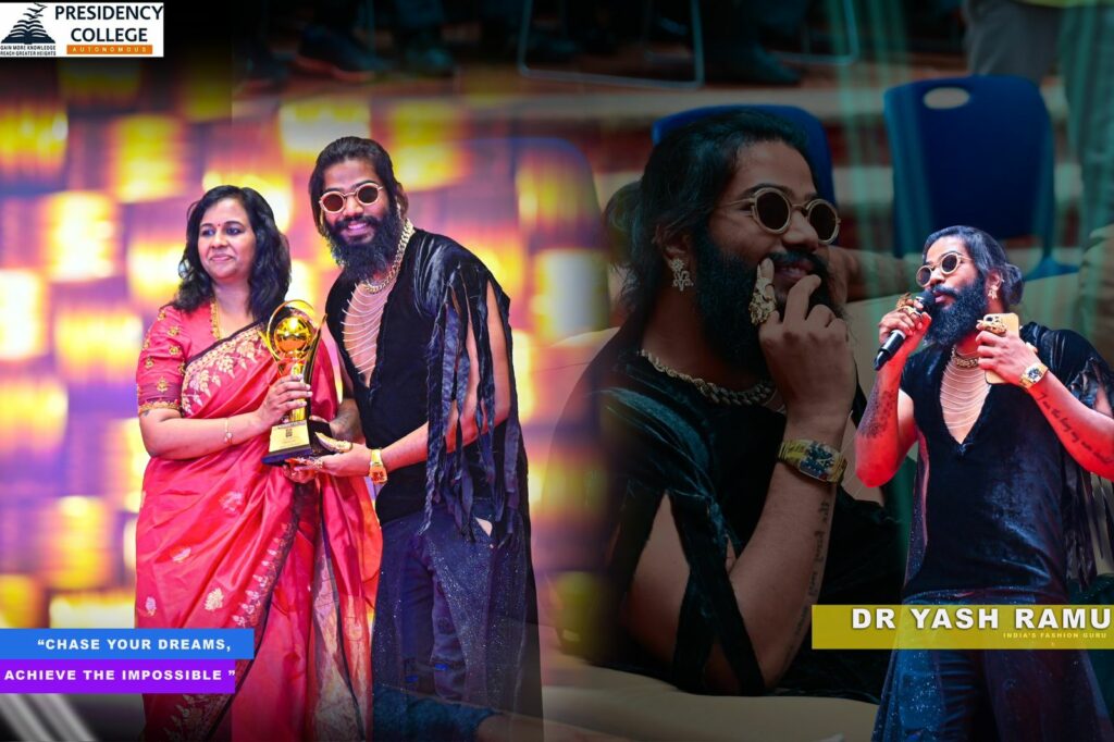 The event also featured a special segment where Dr. Suchithra Nair, Principal of Presidency College, along with Fashion Secretary Dr. Poornima Karthikeyan, honored Dr. Yash Ramu for his significant contributions to the fashion industry. This tribute highlighted the college’s commitment to celebrating excellence and inspiring its students.