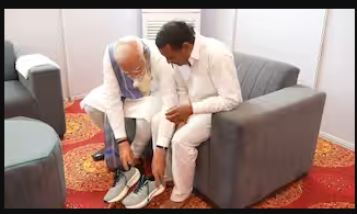 During the brief conversation, Mr Modi also told him not to make such a vow again. “Aaj hum tumko joota pehna rahe hai par baad mai aaisa kuch karna nahi, kahbhi nahi. (I am making you wear shoes, but do not do it again). You should work, why you have done such a thing..giving yourself pain,” PM Modi said.