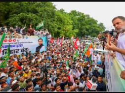 Later Mr Gandhi addressed the protesters targeting the Election Commission which, he said, was acting at the behest of the ruling BJP. Holding a copy of the Constitution in hand Mr Gandhi said, “SIR is not only an attempt to steal your vote but also of your future. But the youths of Bihar will not let it happen as the entire Opposition stands with you.” The gathering, largely comprising students and young supporters, responded with loud cheers.