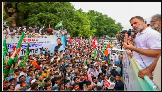 NEW DELHI, July 9: Thousands of people joined as the Congress leader Rahul Gandhi, the Rashtriya Janata Dal (RJD) leader Tejashwi Yadav and other allies of the INDIA bloc, led the “Bihar bandh” protest march in Patna on Wednesday against the ongoing Special Intensive Revision (SIR) of electoral rolls in Bihar by the Election Commission of India (ECI) alleging that the exercise aimed at disenfranchising marginalised voters ahead of the state Assembly elections scheduled later this year.